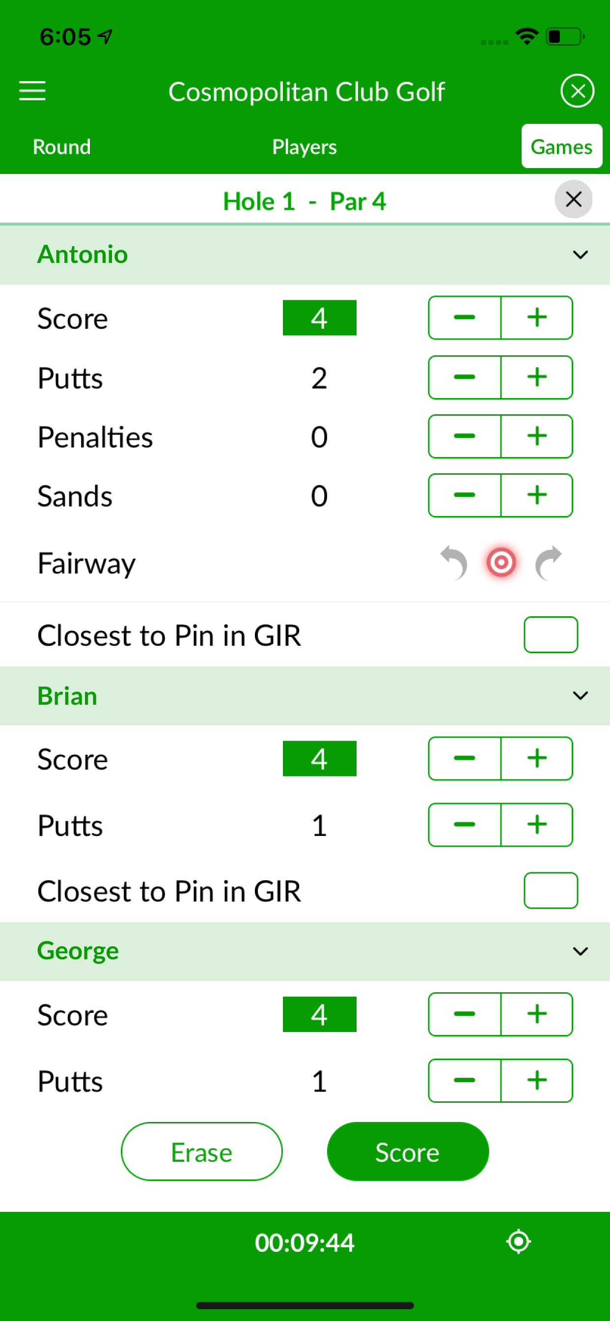 Lowest total putts - 1 point