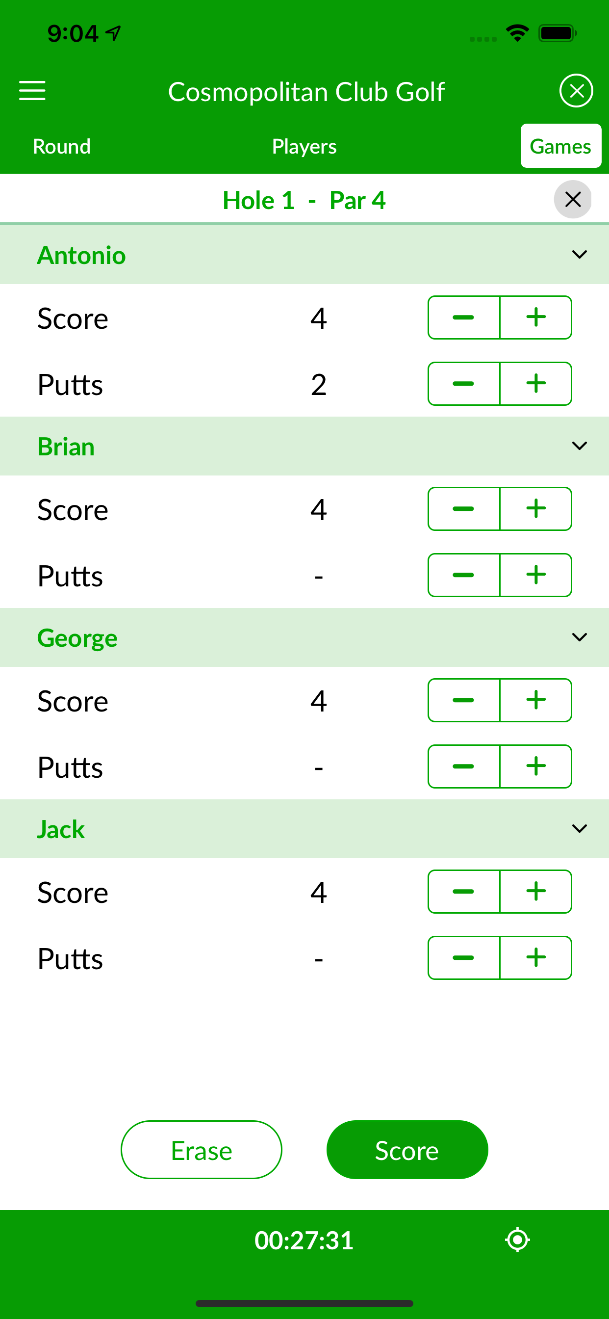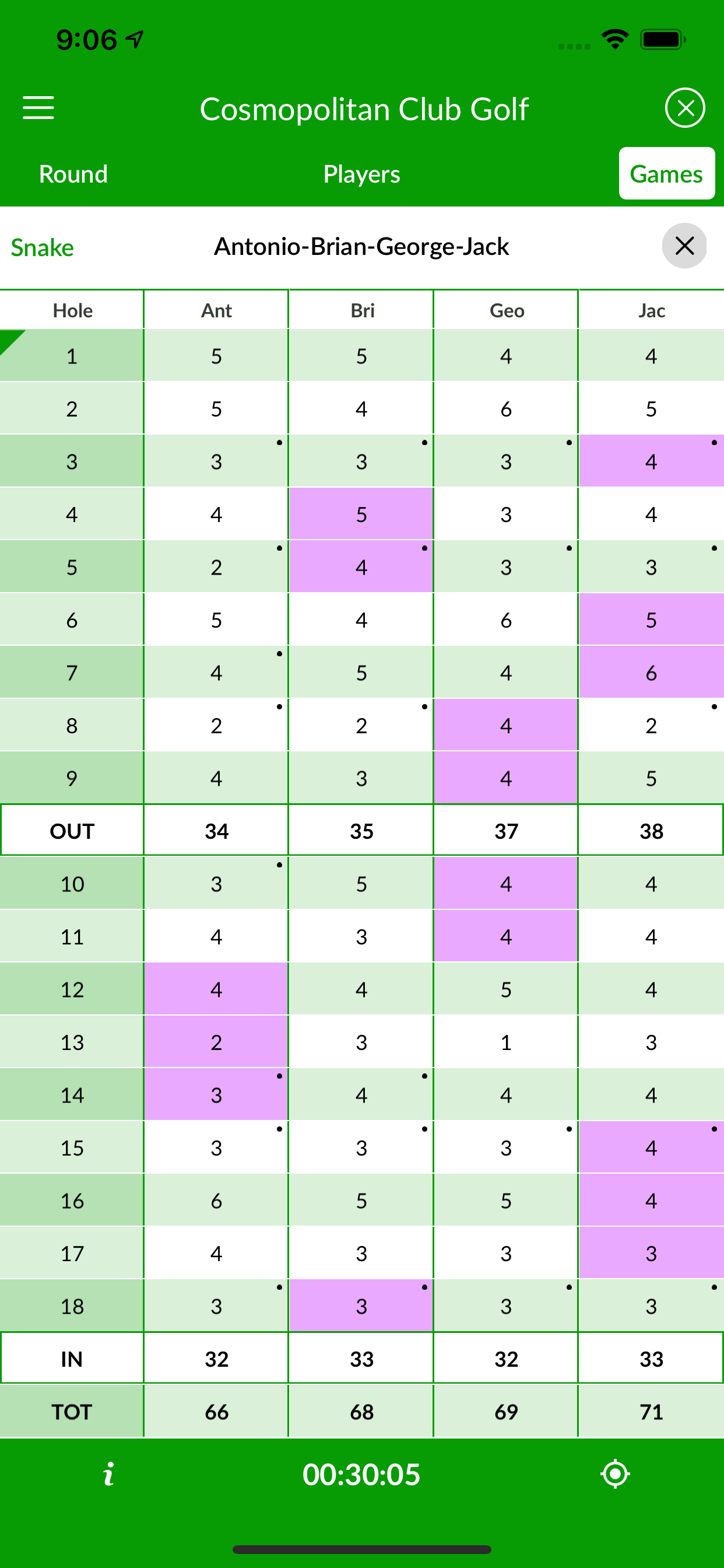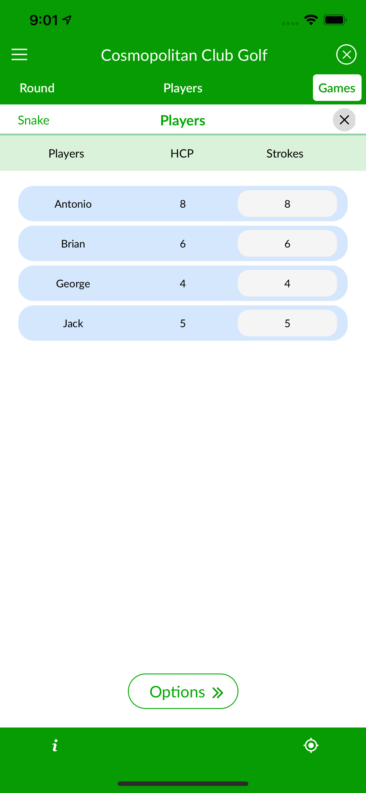 Snake is a side bet game that adds some spice to other games. The Snake is a player that 3-putts. The honor is held until another 3-putts. The player holding the title at the end of the game pays the match bet to the other players of the group. In case of two or more 3-putts in a hole, the Snake title goes to the last player to hole out.