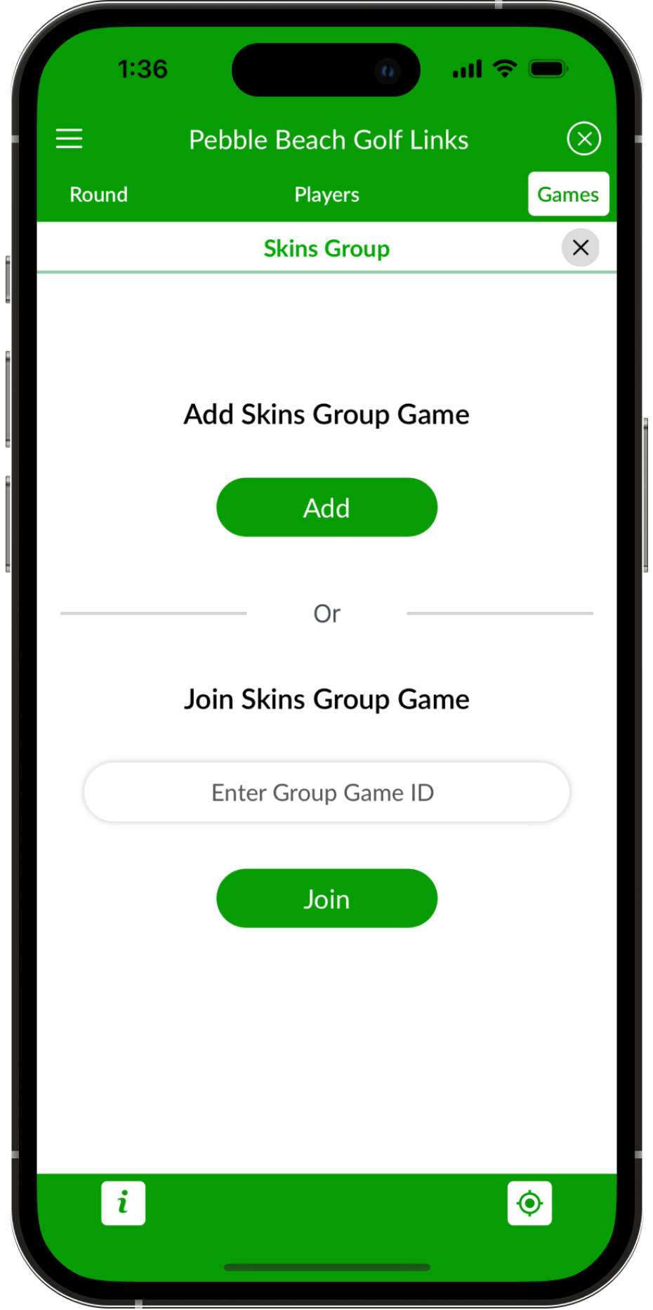 It is easy to add or join a Group game, simply add your group’s players and share the Game ID (we make this easy as well), then hit the ball.
